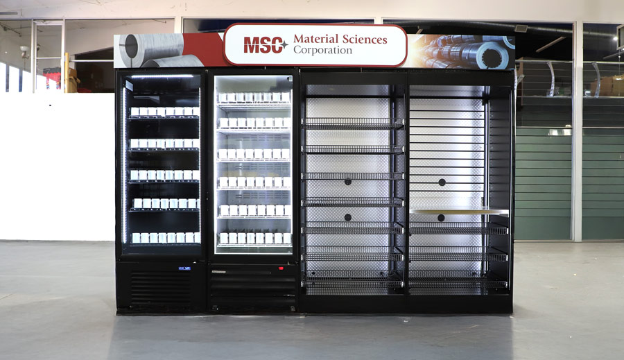 Magnetic Header Cooler and Shelving Display – Material Sciences Corporation Facility, Great for Micro Markets, Vending Machines, and AI Coolers
