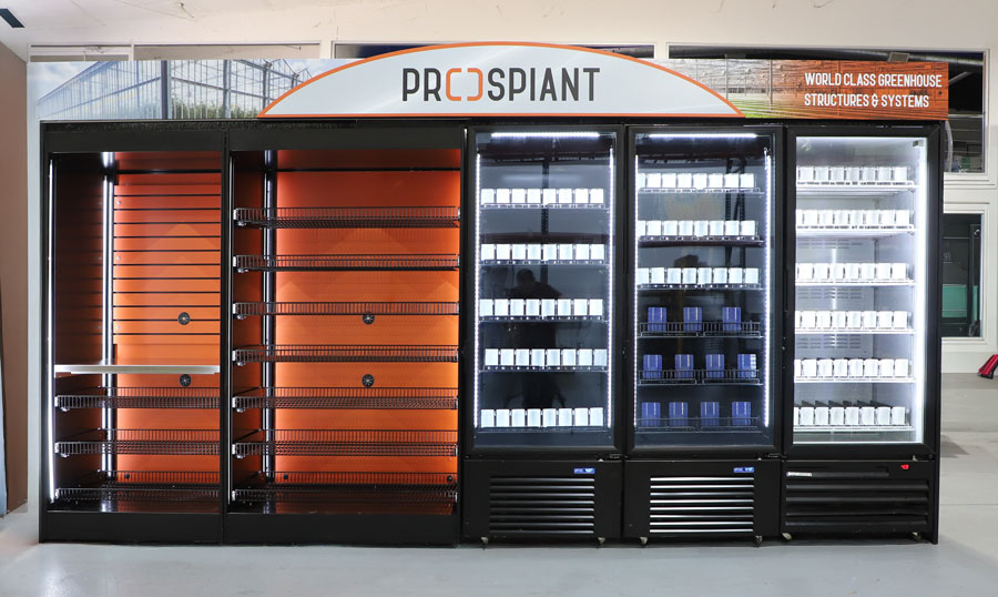 Magnetic Header Cooler Display – Prospiant Greenhouse Facility, Great for Micro Markets, Vending Machines, and AI Coolers