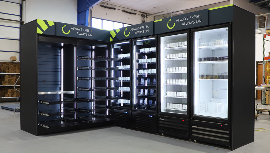 Magnetic header cooler display for Prospiant greenhouse facility, great for micro markets, vending machines, and AI coolers