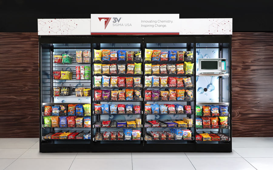 Magnetic header snack display for 3V Sigma USA breakroom, great for micro markets, vending machines, and AI coolers