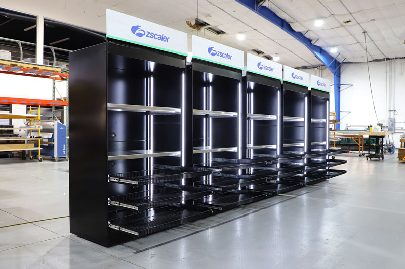 Magnetic header retail display for Zscaler warehouse installation, great for micro markets, vending machines, and AI coolers